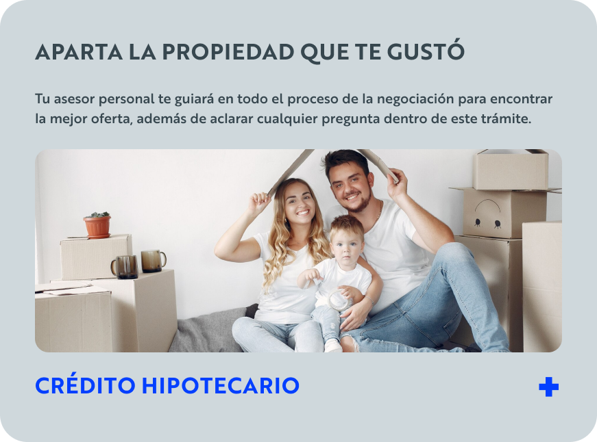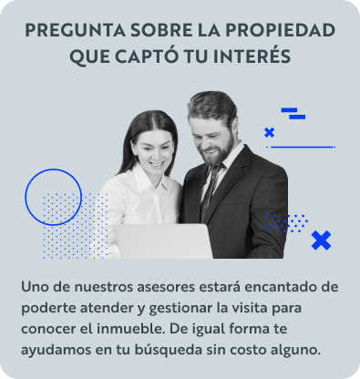En caso de que busques financiamiento para la propiedad a través de una institución crediticia; nosotros te apoyamos con nuestro equipo hipotecario para encontrar la mejor tasa y plazos.